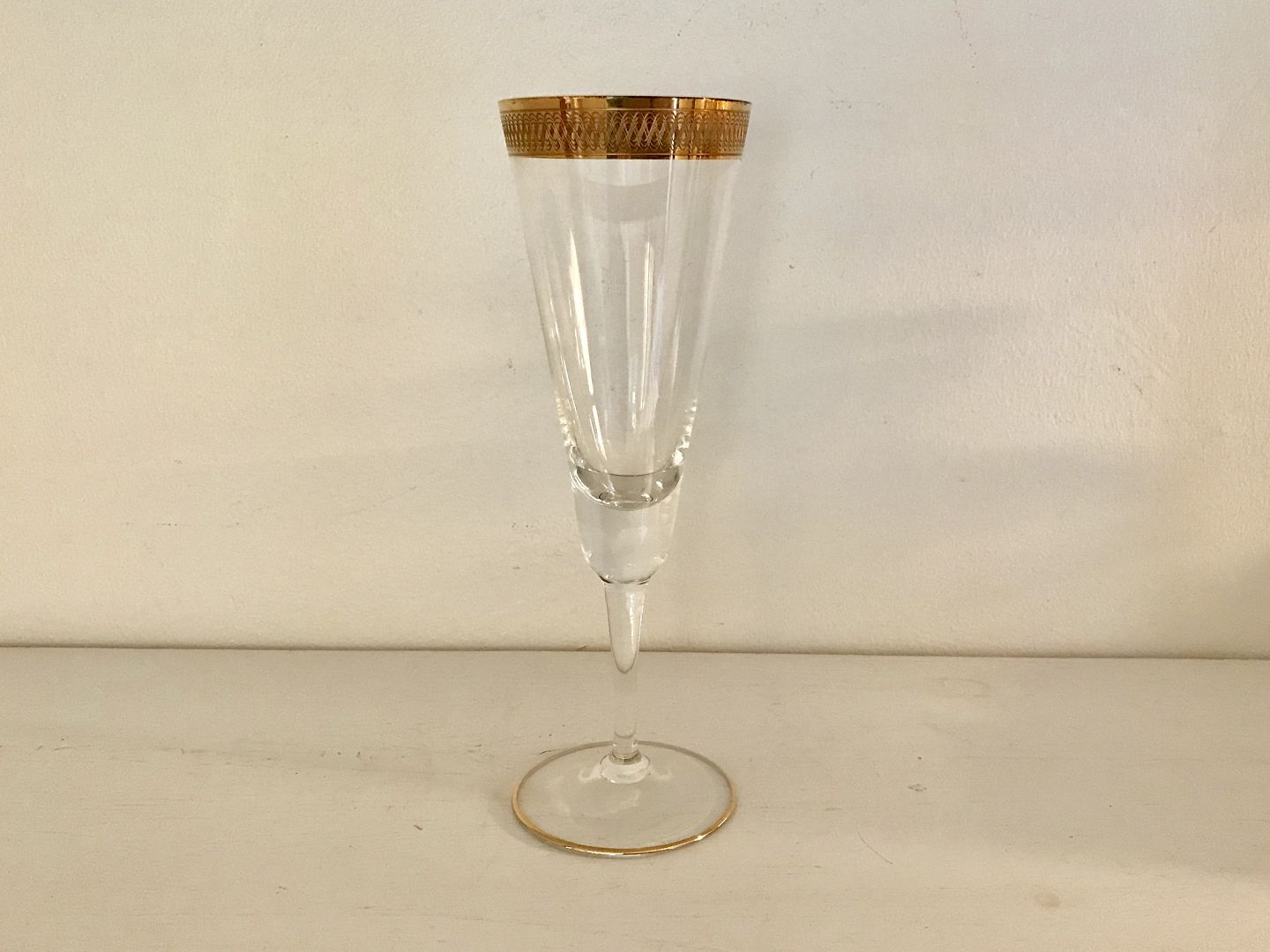 Lyngby Glass, Tosca, Champagne flute, Crystal Glass with gold ribbon, 18.9cm high * Nice condition *