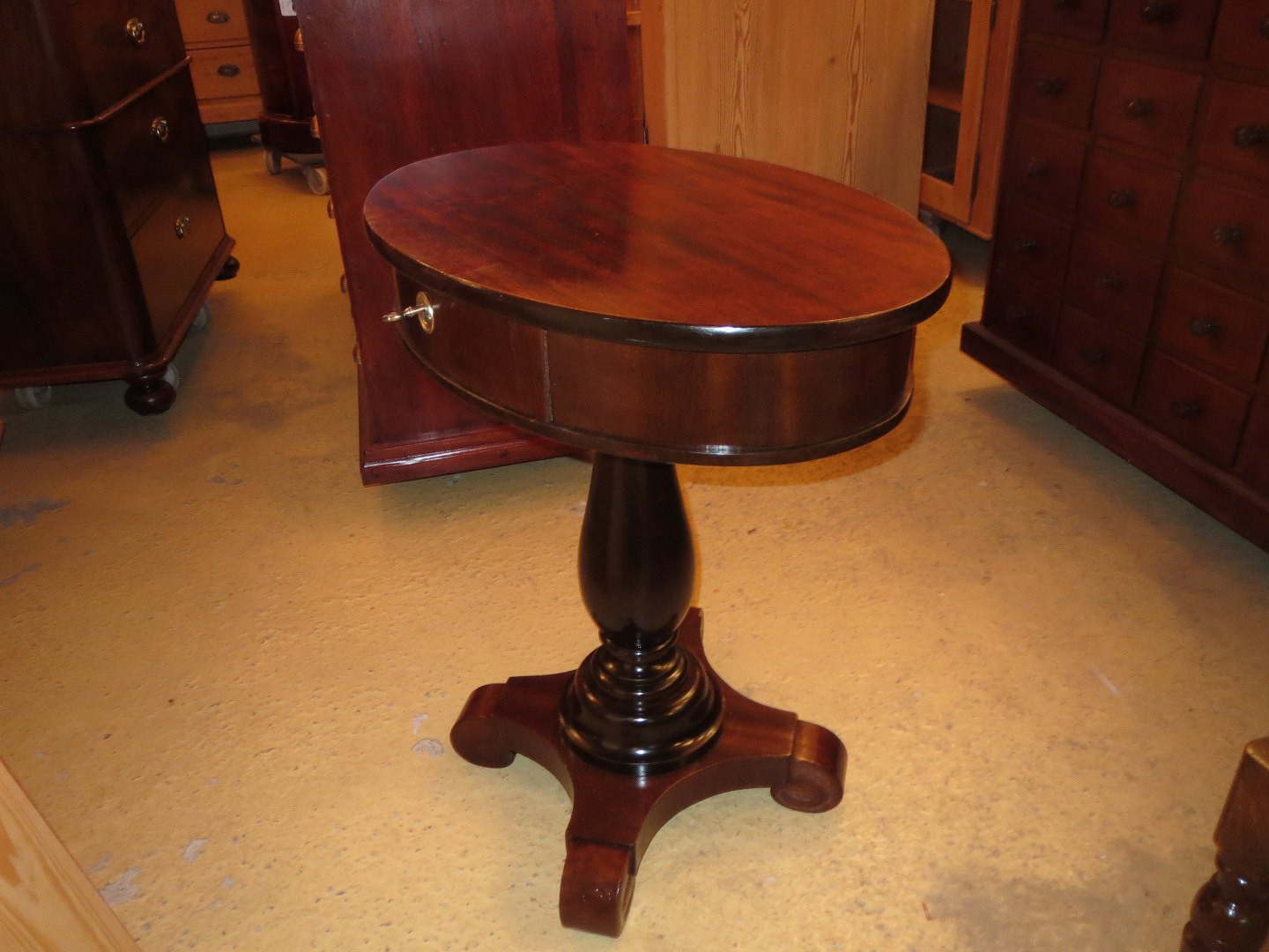 Ovalt Mahogni Lampebord med 1 skuffe Restaureret Håndpoleret Mål H 69, D 44, B 66,cm. 2835/P