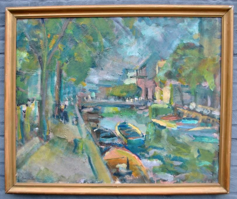 Larsen, Ejnar R. (1902 - 1986) Danmark: Kanal scene, København. Signeret: Ejnar Larsen. Olie på lærred. 81 x 101 cm.