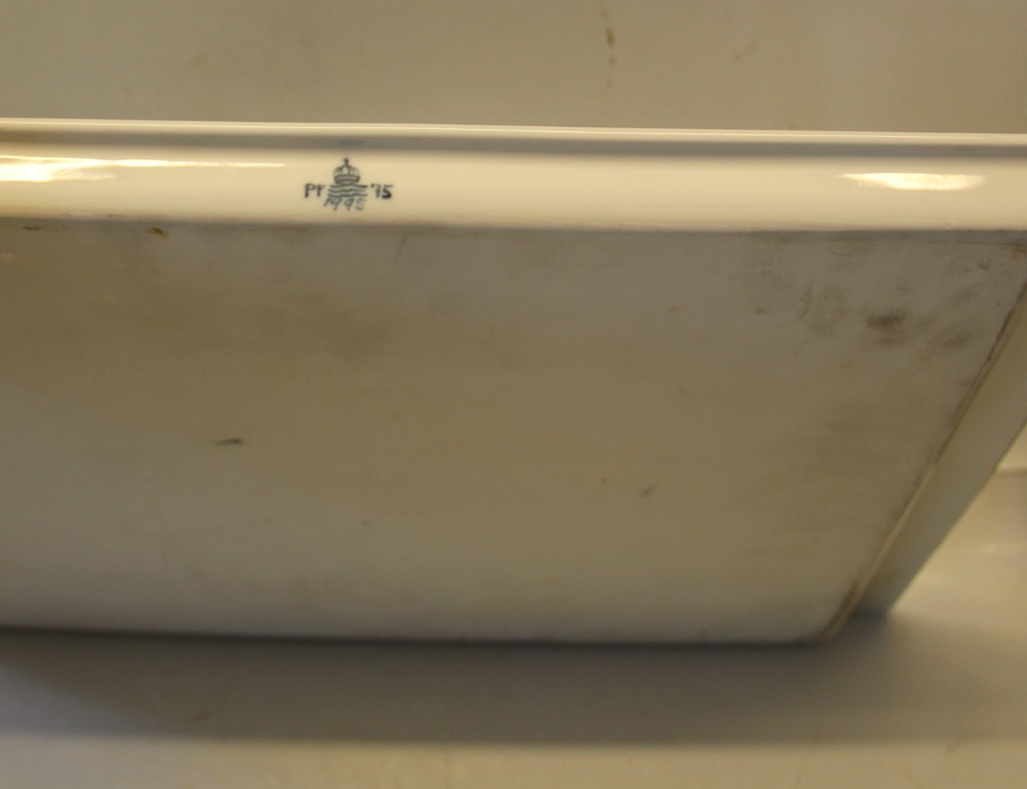 1495-PF75 Tray - Navy Trankebar faience 44 x 31 cm Tallships - outside Kronborg - Elsingnore Castle Aluminia Faience Tranquebar