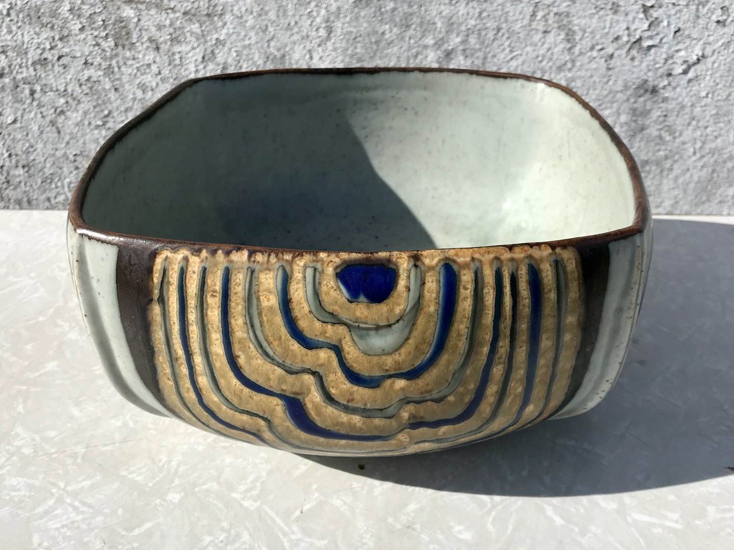 Royal Copenhagen, Ivan Weiss, Stoneware Bowl with wave decoration, 27cm / 27cm, 13cm high, Signed IV-22564 * Nice condition with little traces of wear on the inside *