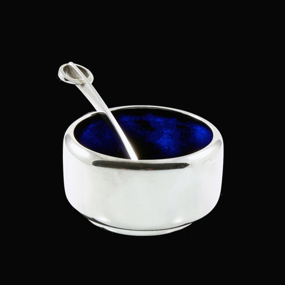 Svend Weihrauch - F. Hingelberg. Sterling Silver Salt Cellar with Enamel and Spoon #33703.