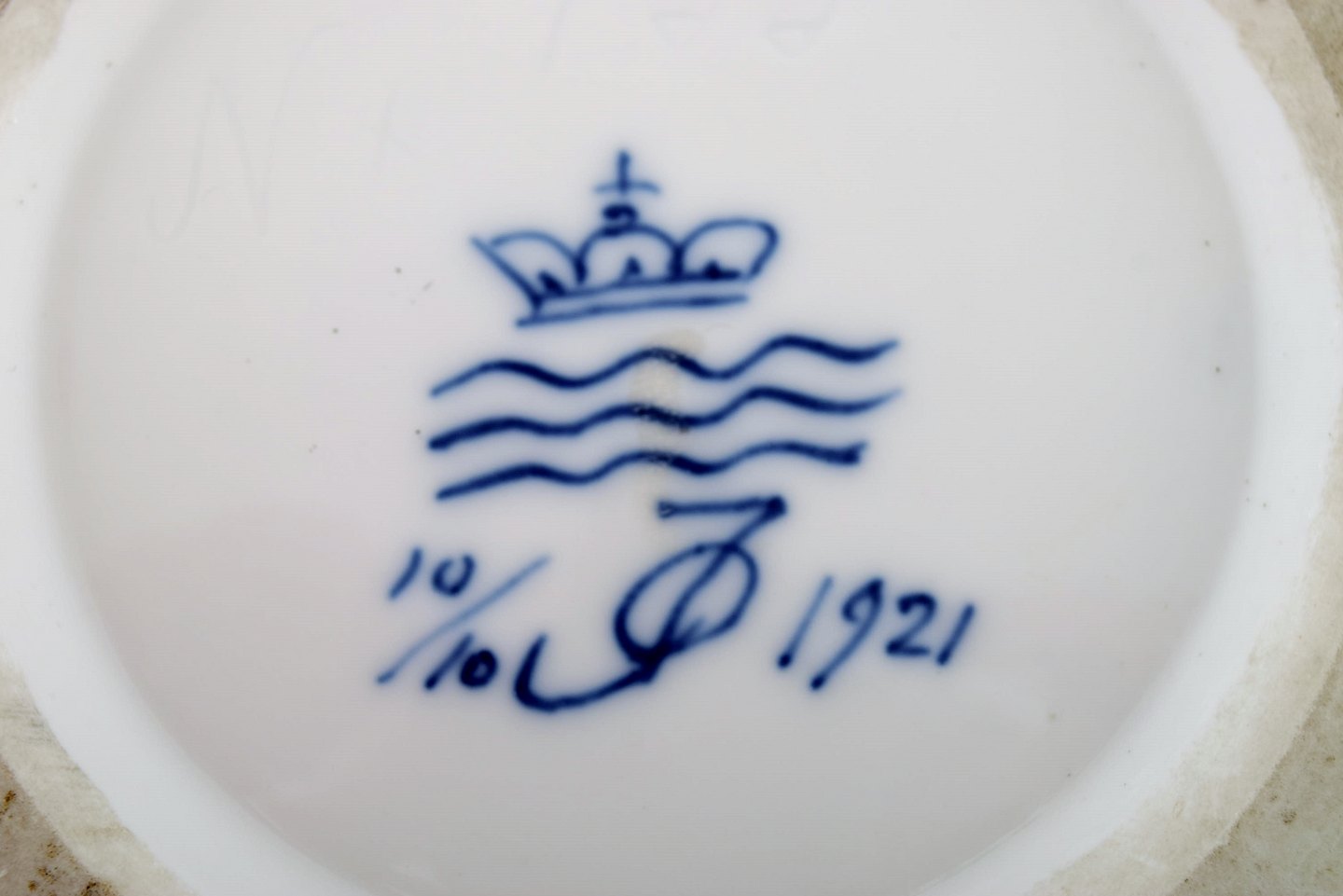 Oluf Jensen for Royal Copenhagen. Large unique porcelain vase with slim neck. Hand-painted with flowers. 1921.