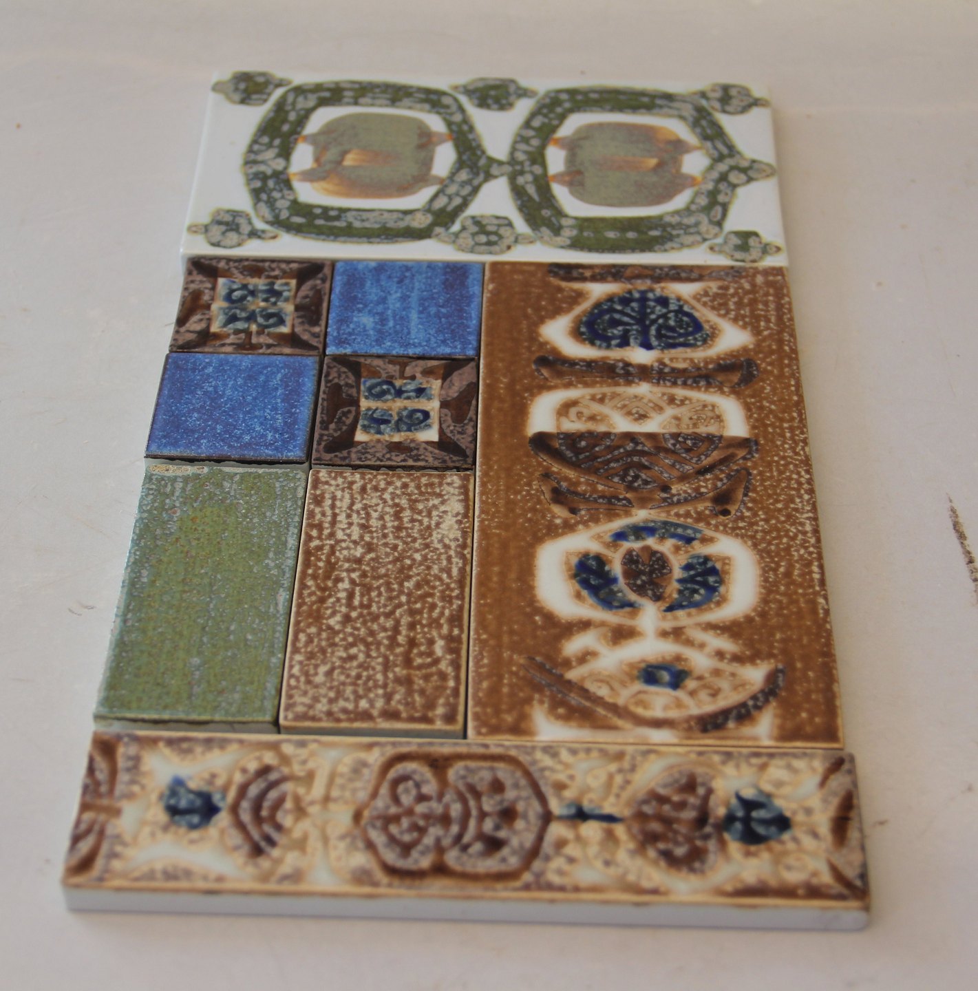 Tiles 2922-720 15.5 x 3.7 cm Brown - Beige - Blue, Nils Thorsson BacaRoyal Copenhagen Baca Aluminia Faience for your Modern Table