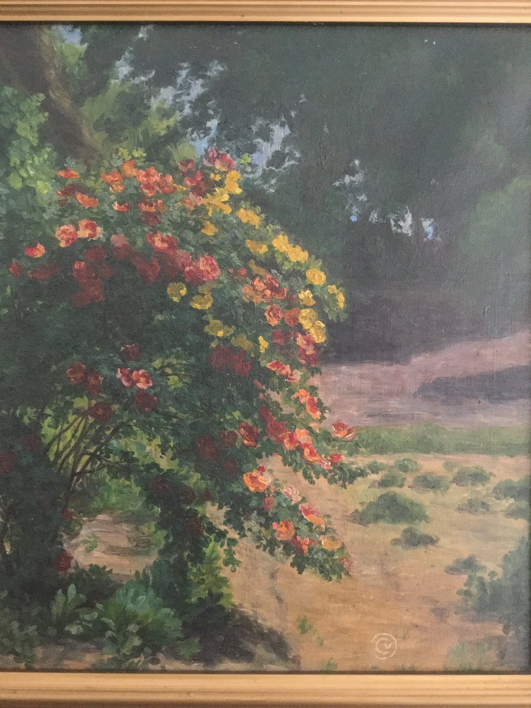 Text available in Danish: Maleri af Caroline van Deurs - En rosenbusk.