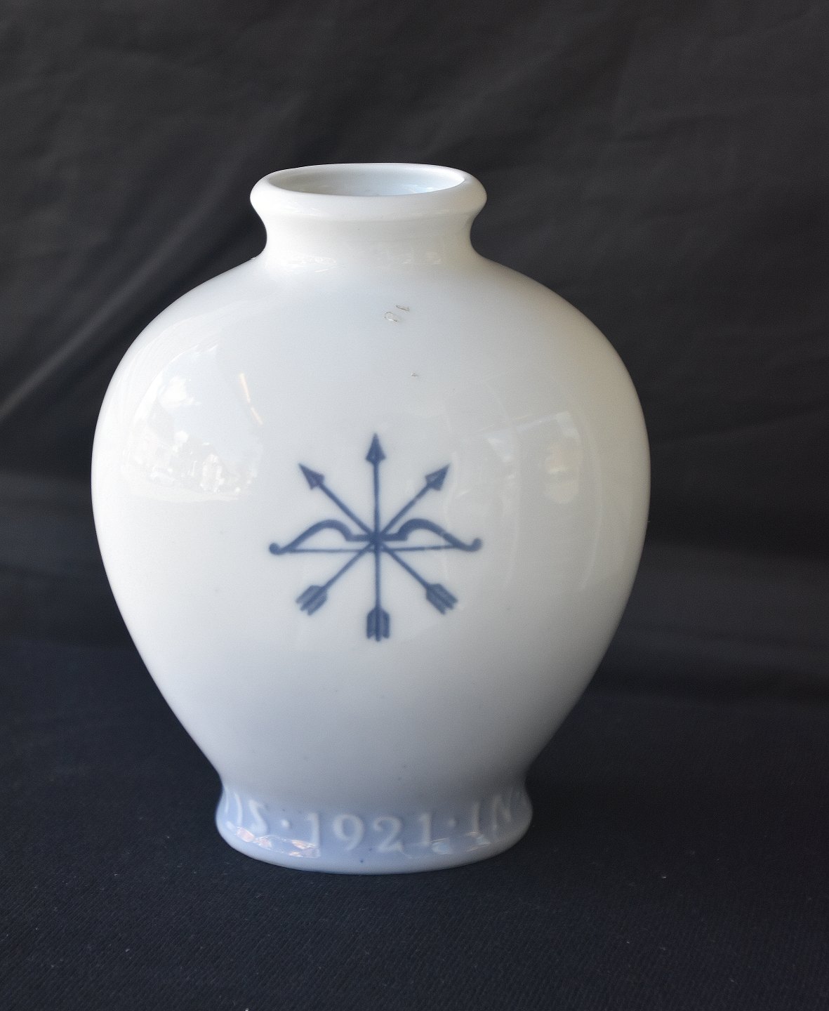 Text available in Danish: Royal Copenhagen. Vase. "In Nomine Caritatis", erindringsvase 1921. Vasen er oval