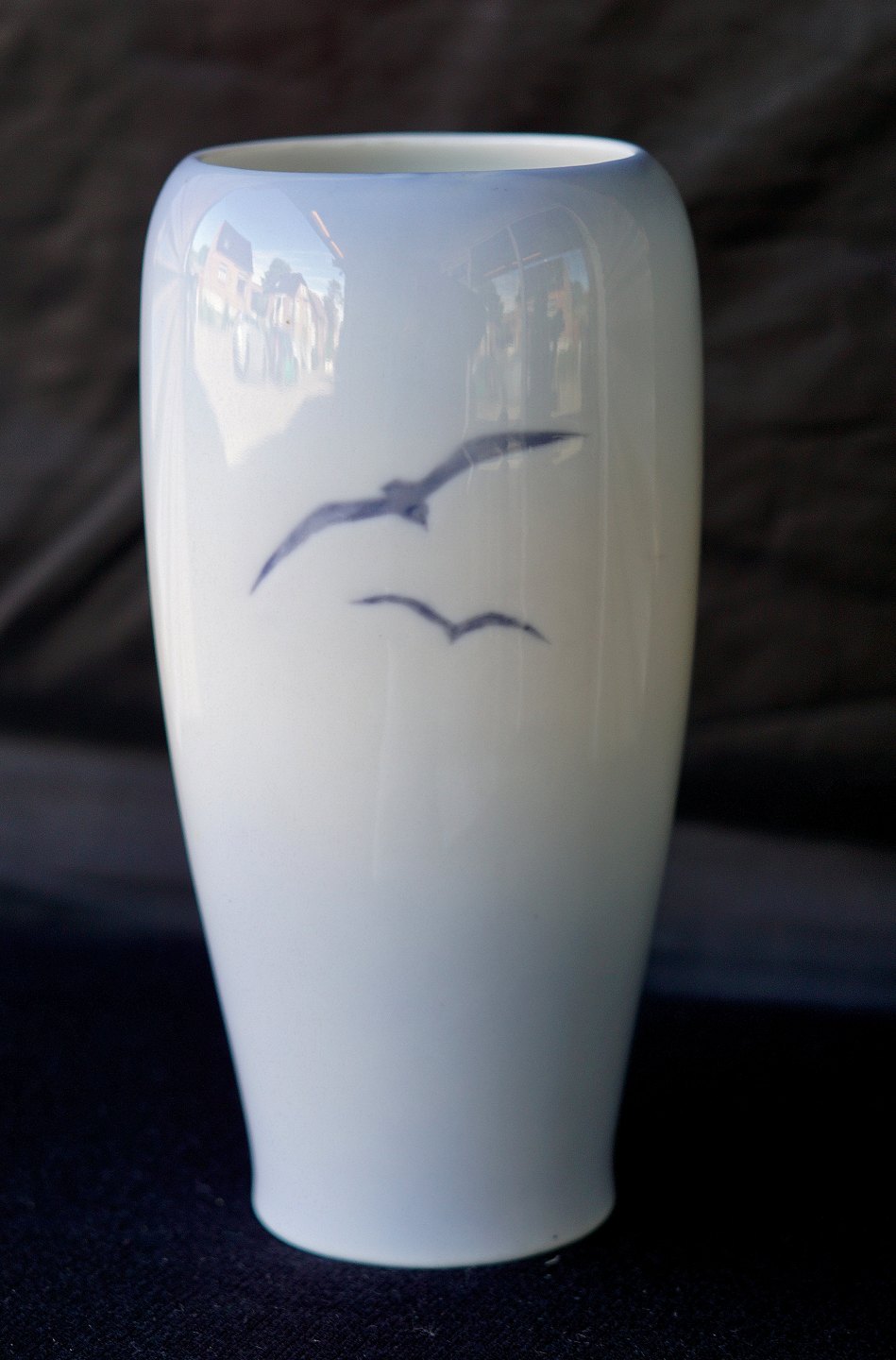 Royal Copenhagen, Vase 3430. Dekoration er Sejlskib med Kronborg Slot i baggrunden, på bagsiden, af vasen, er der 2 måger