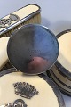 Georg Jensen Dressing table set, Bone with silver mountings Hairbrush, two clothes brushes, two boxes(cracked), two flacons. H. 5-12.5 cm; L. 18.5-22.5 cm. Carved bone, silver, natural bristles. Signed: GI STERLING DENMARK 925 S, or 925S GI with crown STERLING, or GEORG JENSEN (beads), DENMARK STERLING GI 925S (beads) (embossed).