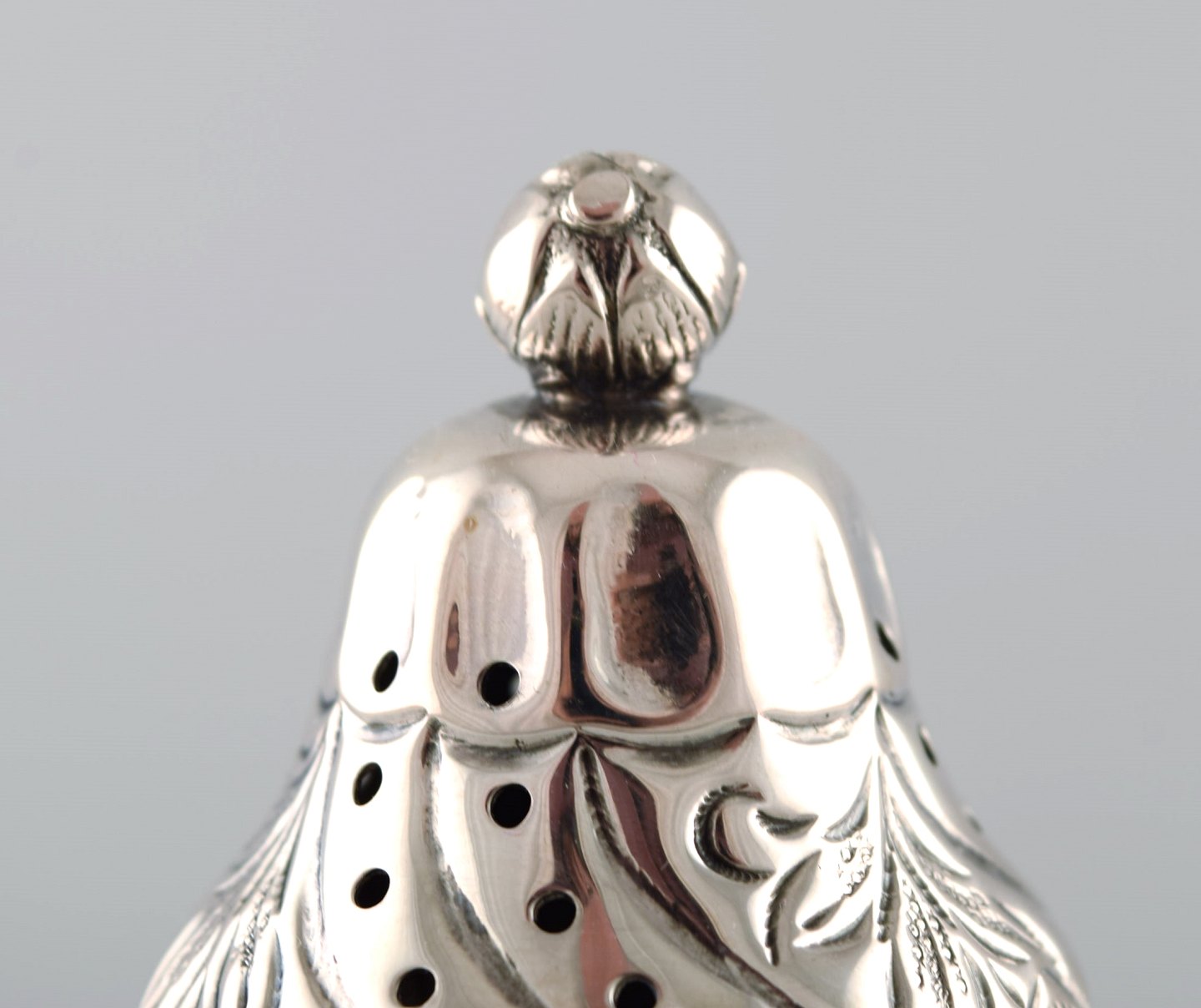 Sæt på tre nyrokoko sukkerstrøer i sølv (830S). Nordeuropa, tidligt 1900-tallet.