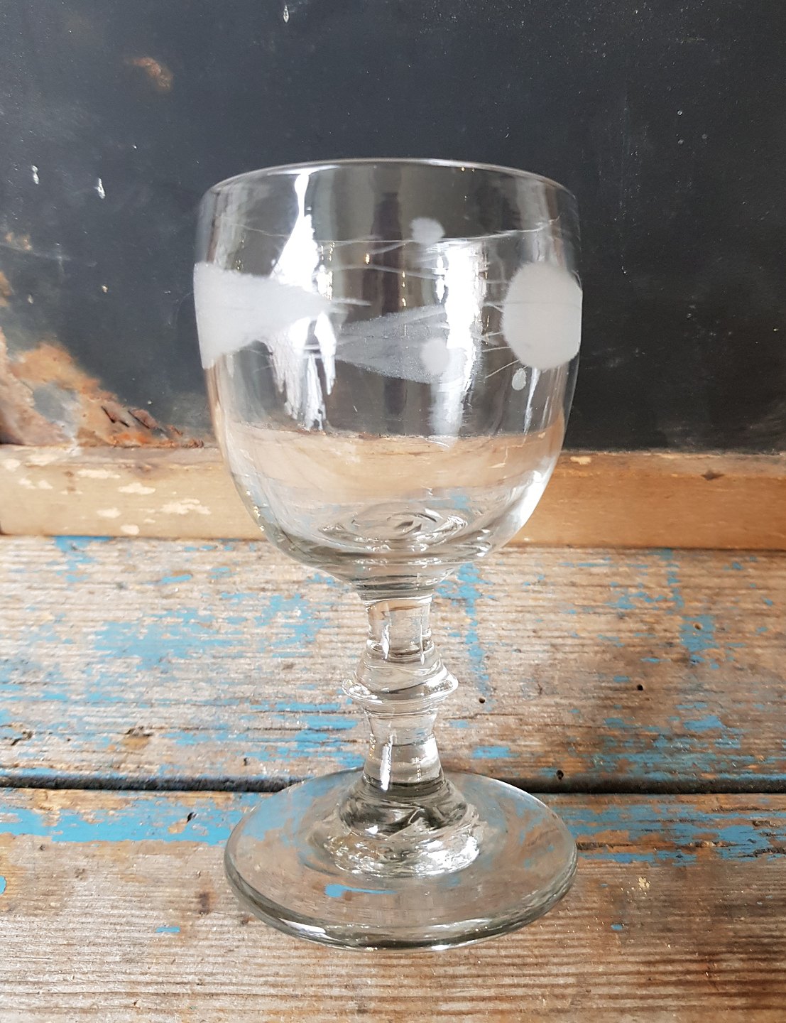 Wine glass from Aalborg Glassworks 1800s 2nd half. Rounded bowl on thin stem with button.