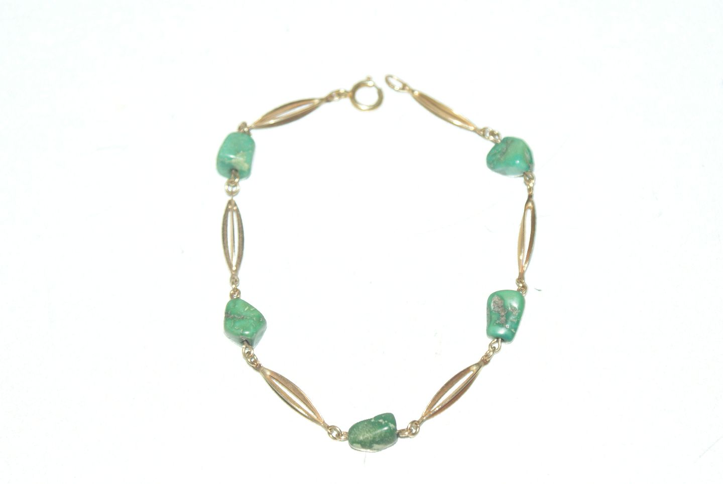 Elegant Gold Bracelet with green Turkish stone 14 carat