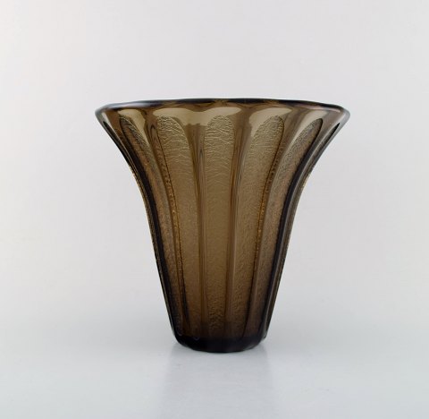 Daum Nancy art deco vase i røgfarvet slebet kunstglas. 1930'erne.