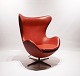 With its unique, organically shaped seat that provides a sense of security and comfort, and its characteristic high backrest, the Egg Chair offers a unique sitting experience. It is carefully upholstered in red elegance leather that not only adds a luxurious feel but also emphasizes the chair's timeless elegance.