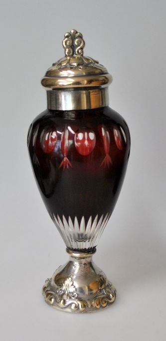 Sugarcaster, with Bohemian glass and silver / new silver fitting, 20th century. Height: 20.5 cm.