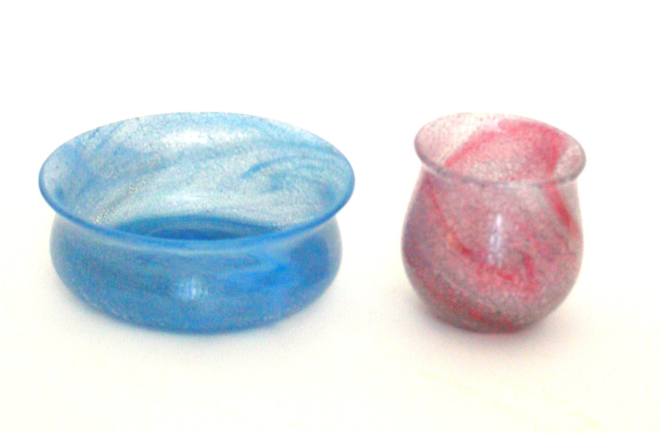Text available in Danish: Skål og vase i troldeglas, Holmegaard