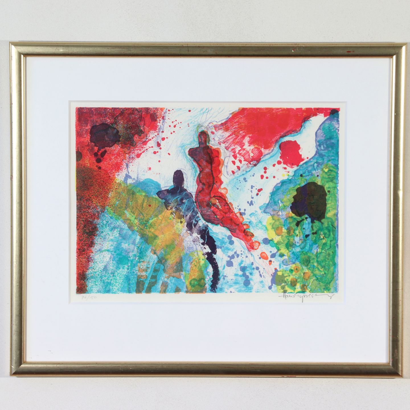 Hans Tyrrestrup (f. 1944) litofrafi i farver signeret med blyant Hans Tyrrestrup nr. 76/150 rammemål højde 45 cm, bredde 53 cm