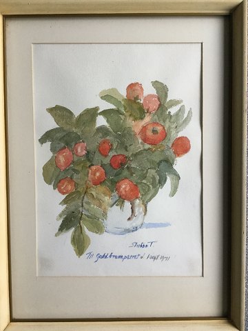 Akvarel af C.V. Stubbe Teglbjærg - Blomster i vase 1971.