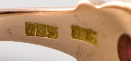 Georg Jensen 18 carat gold ring with violet semi precious stone. Dated 1933-44.