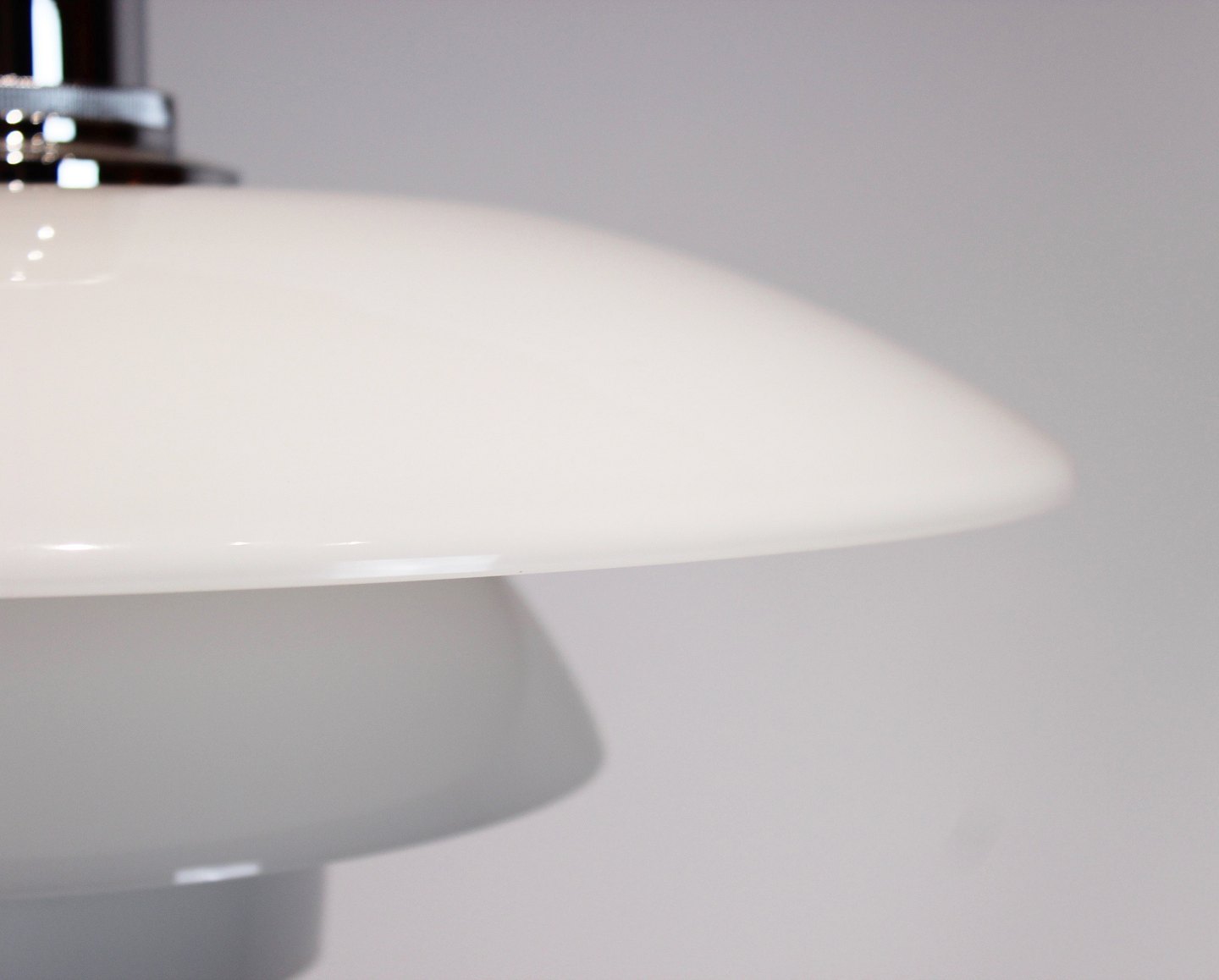PH 4½-4 pendant by Poul Henningsen and Louis Poulsen. The lamp is of white opaline glass and bright chrome plated aluminium.
