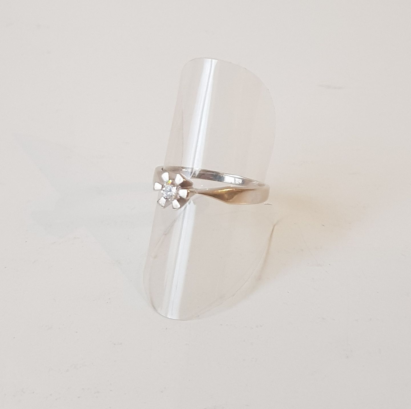 Solitaire ring in 14 kt white gold with brilliant-cut diamond 0.15 ct Stamped 585 - 0.15 ct - JAB