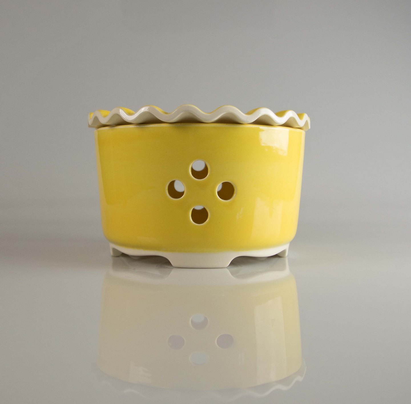 Gul tevarmer i fajance fra Confetti stellet Susanne