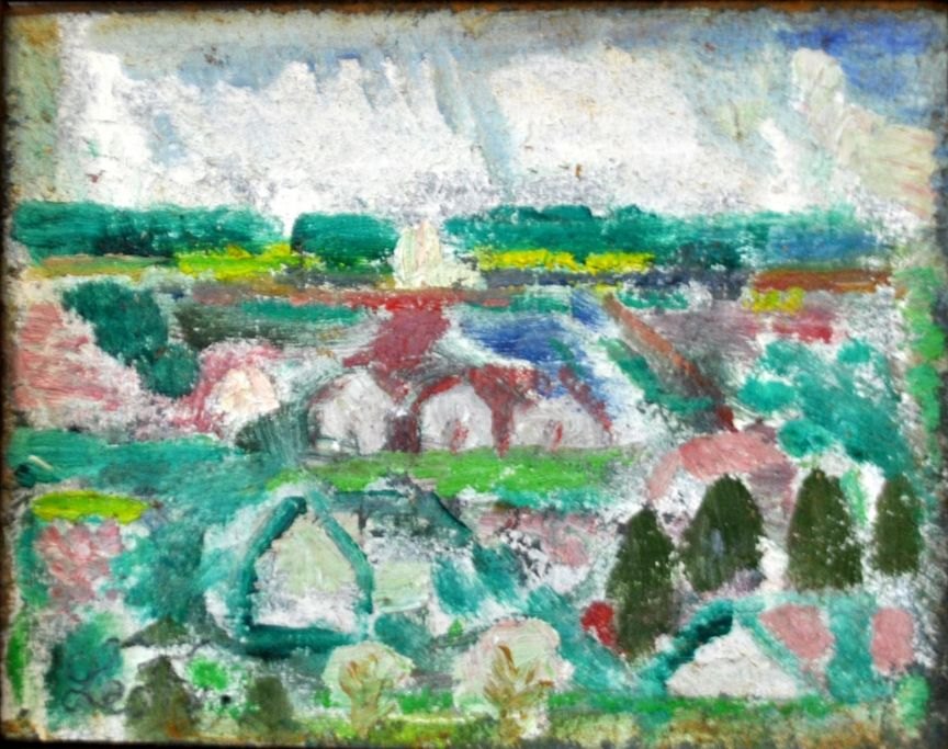 Thellefsen, Leo (1909 - 1997) Denmark: Sketch 1987. Oil on soft masonite. Signed. 13 x 16.5 cm.