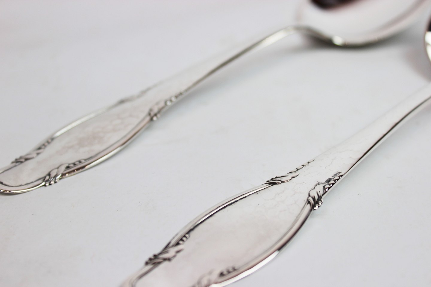 Serving spoons in Frijsenborg, hallmarked silver.25 cm and 22 cm.