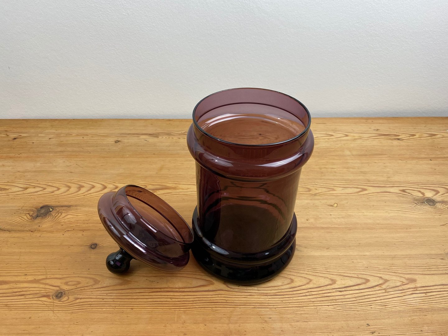 The purple glass pharmacy jar is 27 centimeters high incl. the lid and 14 centimeters wide.