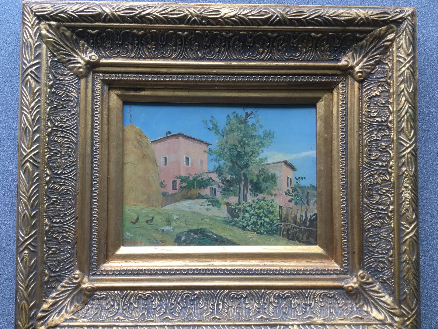 Maleri af Giuseppe Cafaro - Italiensk parti med huse.