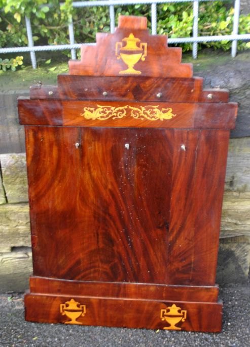 Empire pibe bræt i mahgoni med instarsia, ca. 1800. Danmark. Fineret på fyrretræ. Til 7 lang piber. 85 x 50 cm.