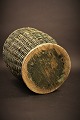 Decorative, old Swedish 1800 century wicker basket with wood bottom, green original paint and a fine patina