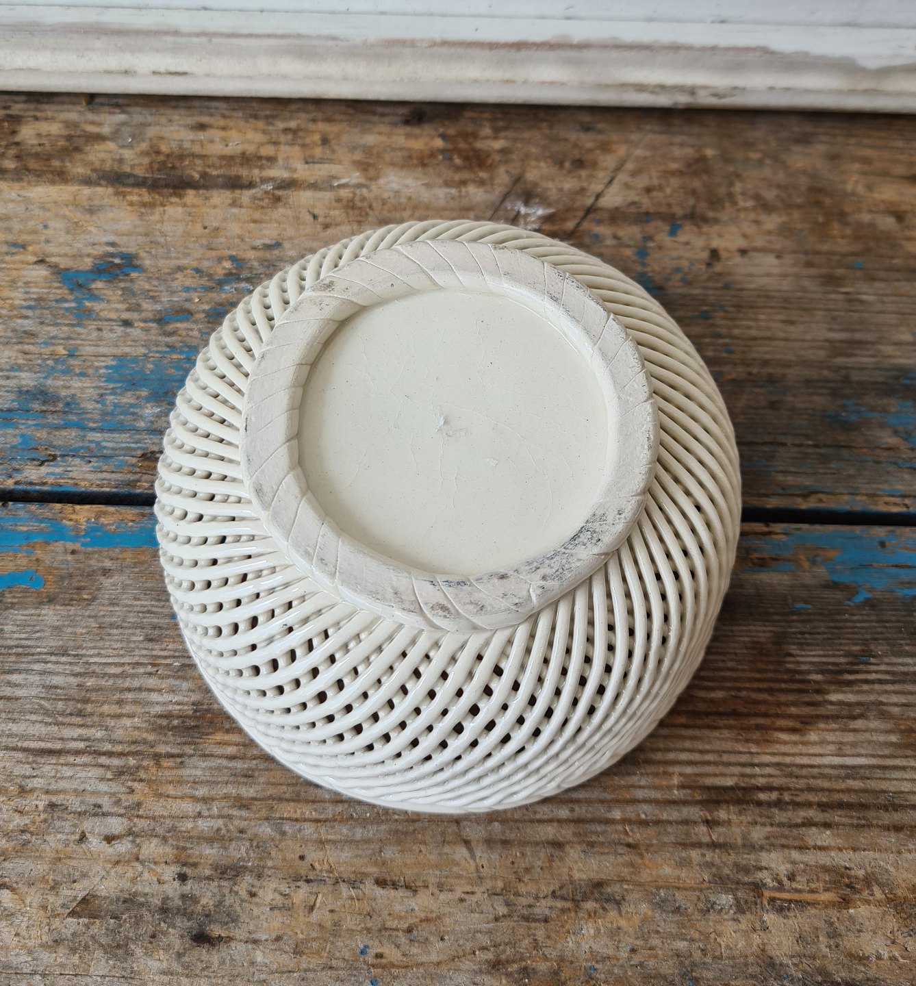 1800s braided cream colored faience bowl