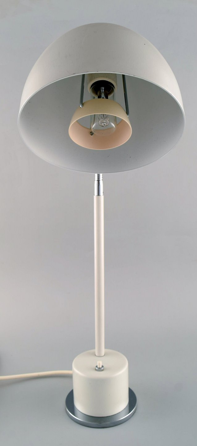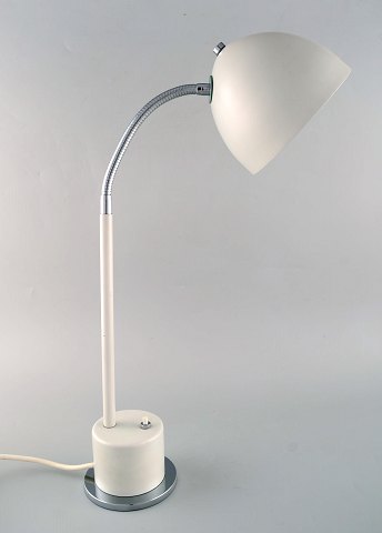 Asger Bay Christiansen. Adjustable table lamp. Model 'Table bully' of white lacquered metal, flex stem of chromed metal. Produced by Asger Bc Lys. Late 20th century.