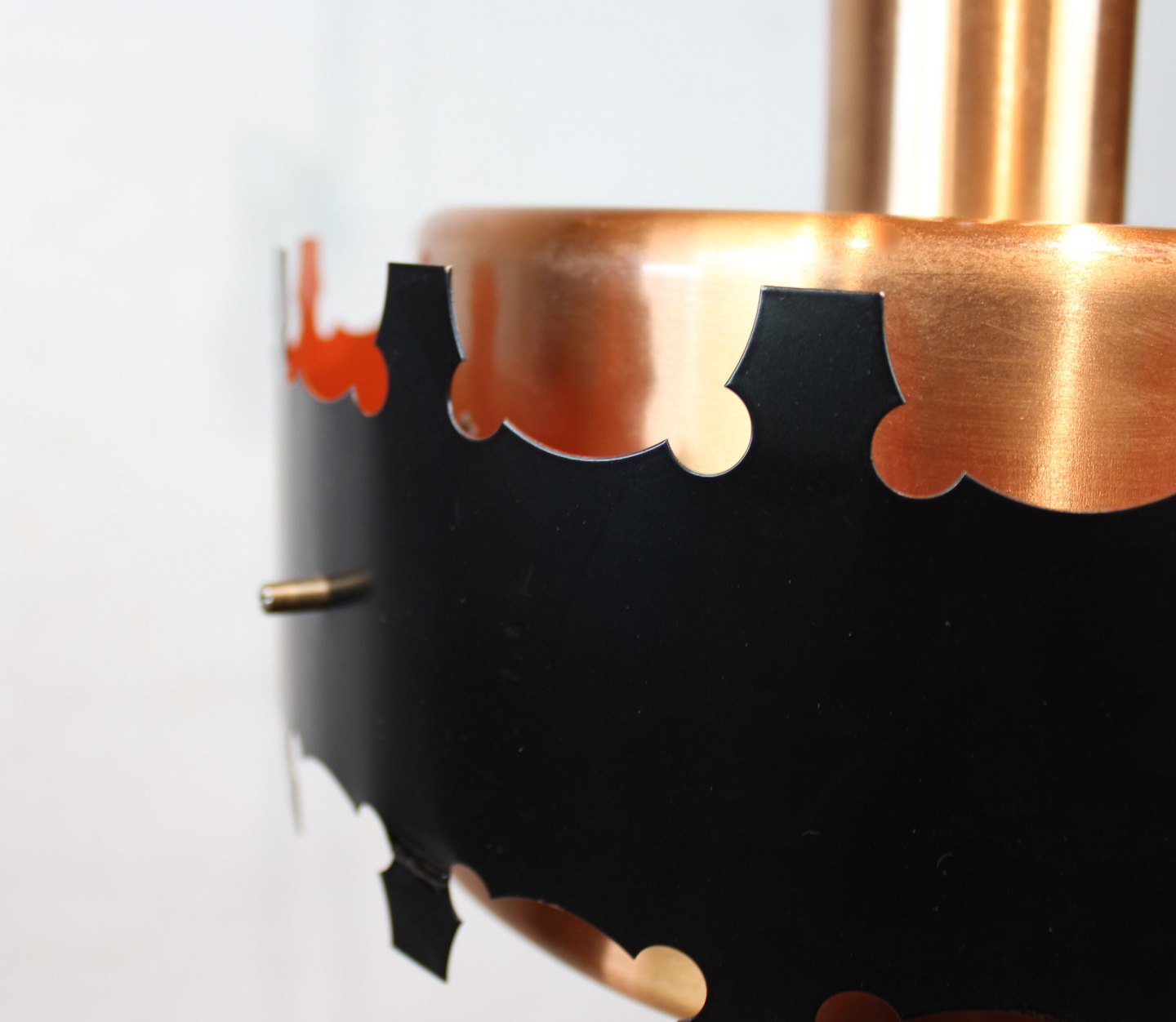 A pair of pendants in copper and black metal of danish design from the 1970s.