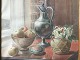 Text available in Danish: Akvarel af Ove Larsen 1928 - Opstilling med jingerjar med aurikler mv.
