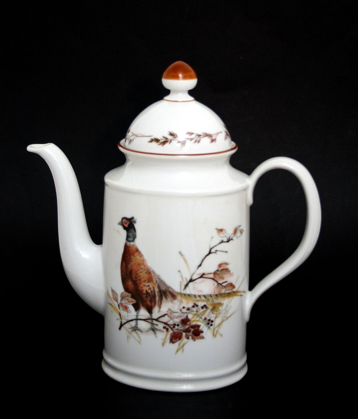 Jagtstellet designet af Mads Stage for Imerco. Kaffekande med Fasan kok. Højde 25 cm. 22,5 x 10 cm. Pris: 575 kr. stk. Lager: 1