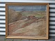 Maleri i guldramme med lærredskant. Motivet er et rødt hus i klitterne. Signeret G. April.