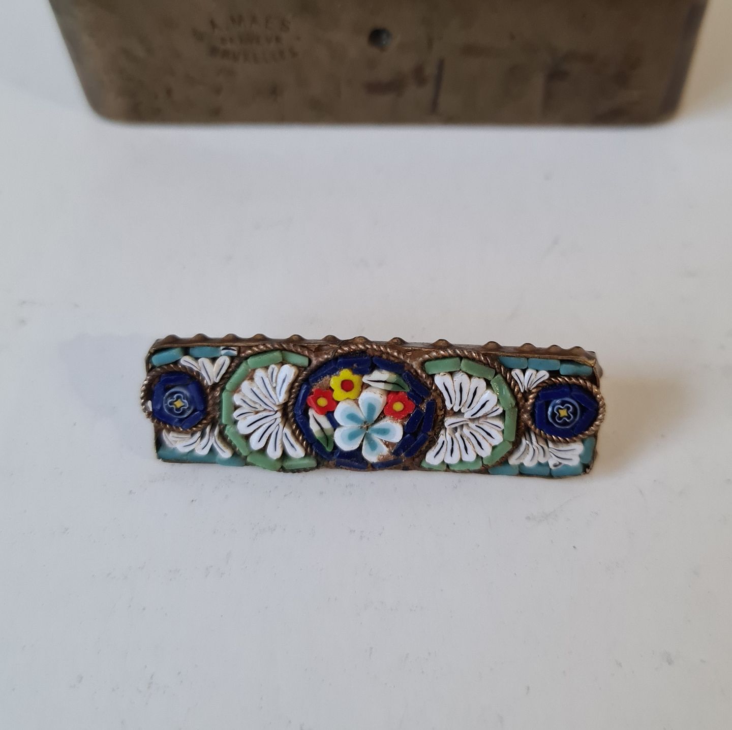 Italiensk Mille Fiori broche - glas mosaik.