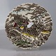 Tallerken i cremefarvet ironstone med multifarvet motiv af postvogn i landskab.
