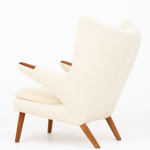 AP 19 - Nybetrukket Bamsestol i lyst tekstil (Vidar 1511) med poter i teak og ben i egetræ. Formgivet i 1951.