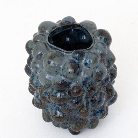 Organic vase in stoneware with blue-green floating glaze, H. 23 cm