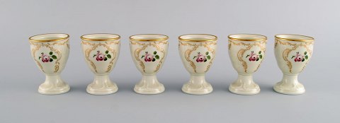Seks Rosenthal Classic Rose æggebægre i håndmalet porcelæn med blomster og gulddekoration. Midt 1900-tallet.