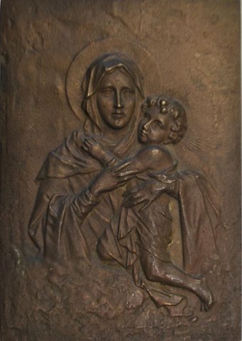 Bronze relief, Madonna with the child, 20th century. 24 x 17 cm.