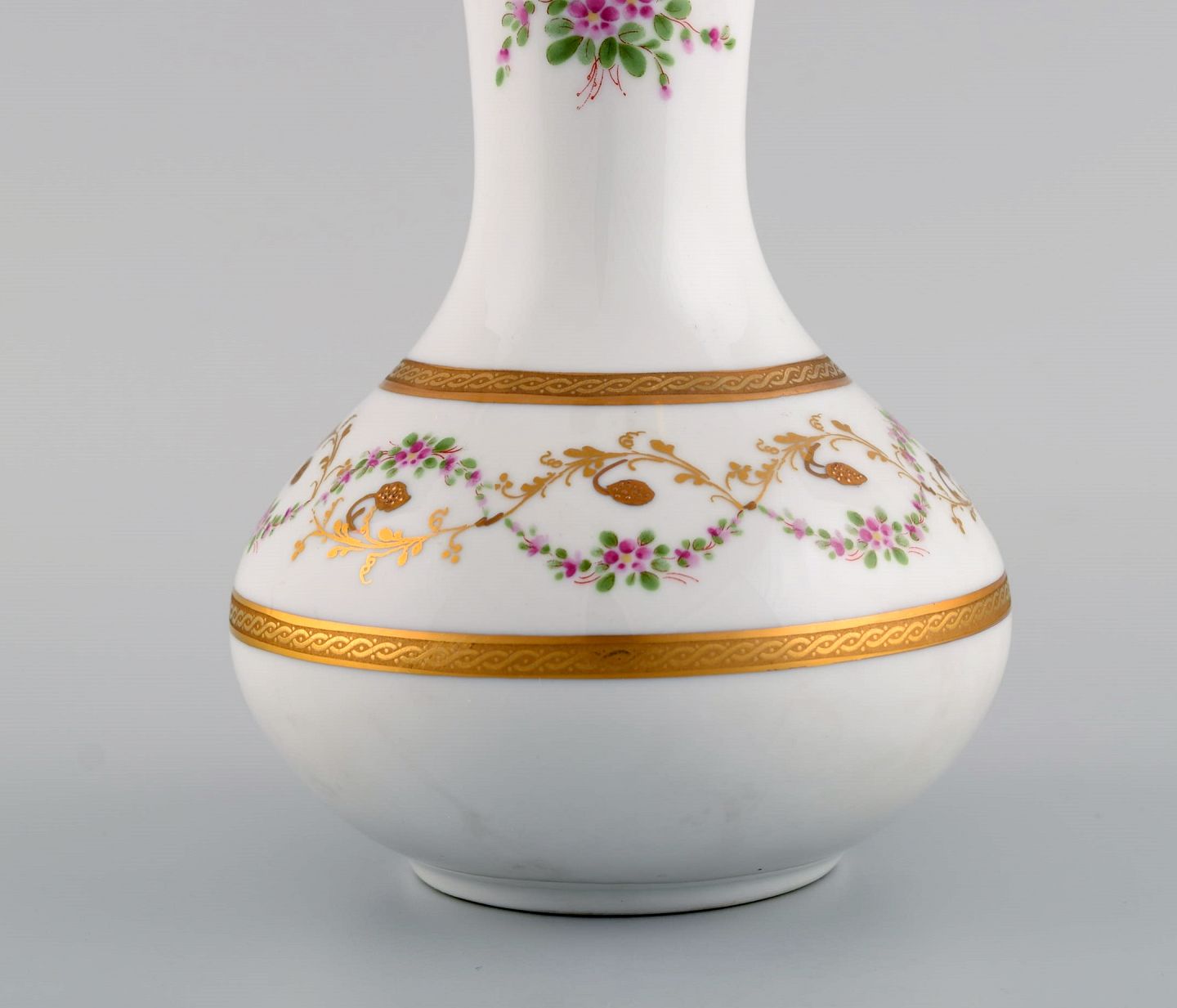 Limoges vase in hand-painted porcelain with floral and gold decoration. 1920's.