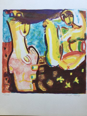 Litografi af Inge Hørup - Komposition med kvinder.