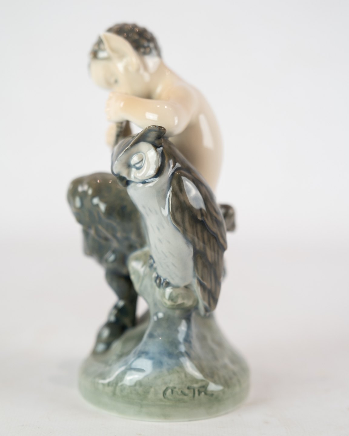 Royal porcelain Pan figure with owl, no.: 2107 by Royal Copenhagen.