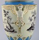 Large Dresden ornamental vase in hand-painted porcelain with classicist scenes and handles in the shape of angels. 19th century.