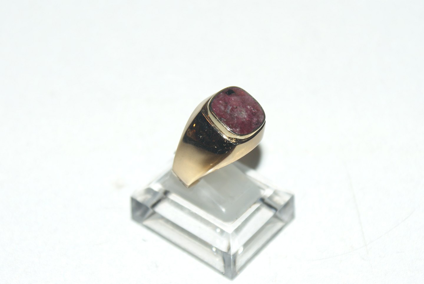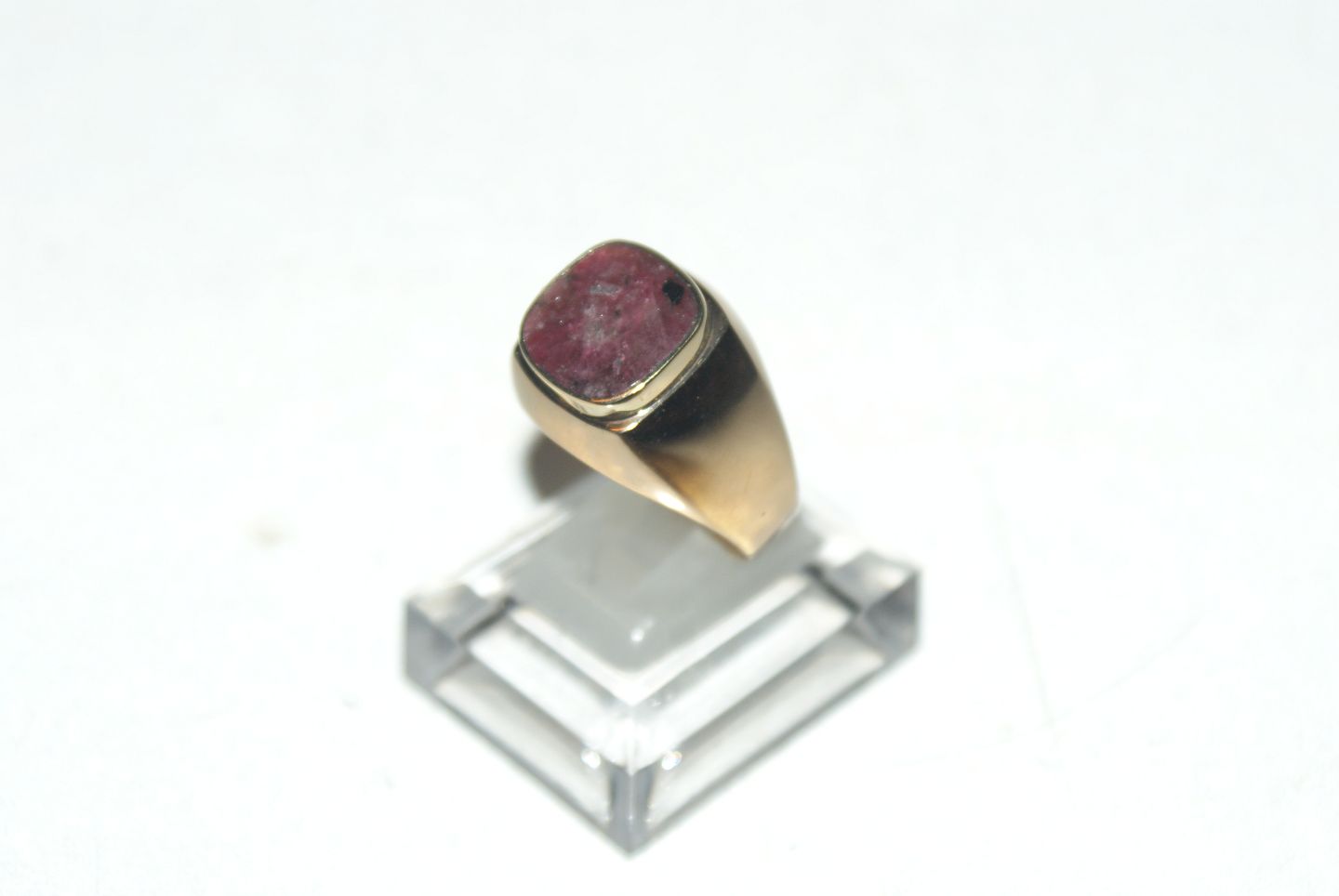 Herrering med Rødlig sten i 14 karat guld