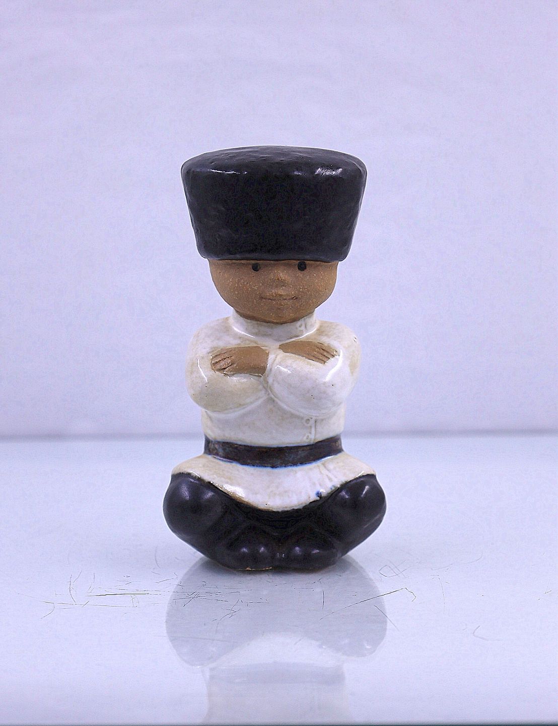 Lisa Larson. Siddende kosak dreng, Ivan, fra serien "Alverdens børn". Serien Alverdens børn fra 1975 blev skabt på opfordring af UNICEF.