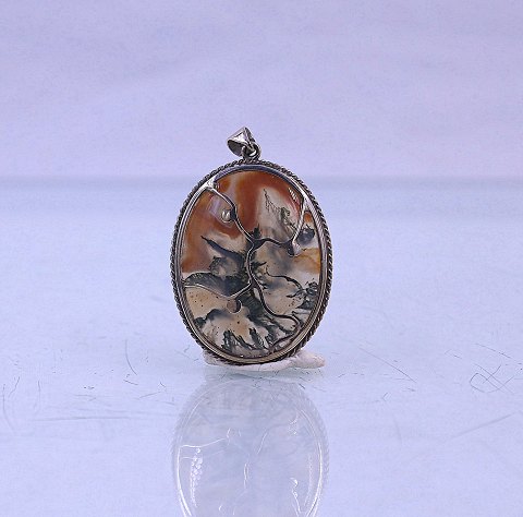 Fritz Johannes Rosleff, Norway. Ovalt marmit-"sten" vedhæng, marmitten er indfattet i sølv. Sølv 830s.